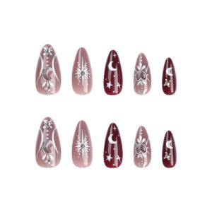 Burgundy Nail Art Nail Patch Star Moon Wear Nail Fake Nail Crochet Nail Patch Nail Stickers Nail Patch Wholesale