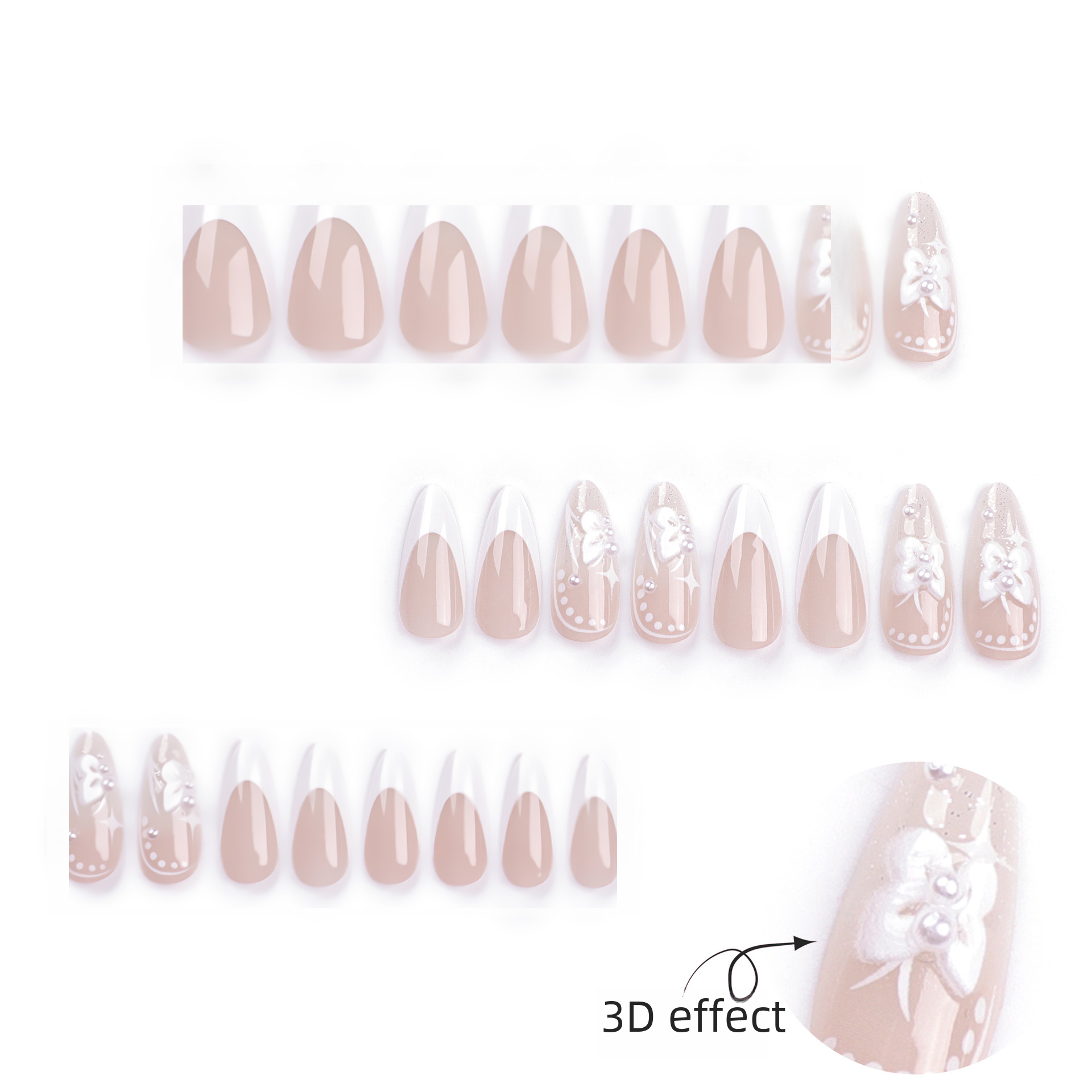 3D bow wear nail white French manicure net red small red book pure desire starburst wear nail piece finished wholesale