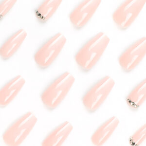 Peach Pink French Plum Drill Drops Long Ballet Wearable Nail Art Finished Fake Nails Nail Patch Nail Patch