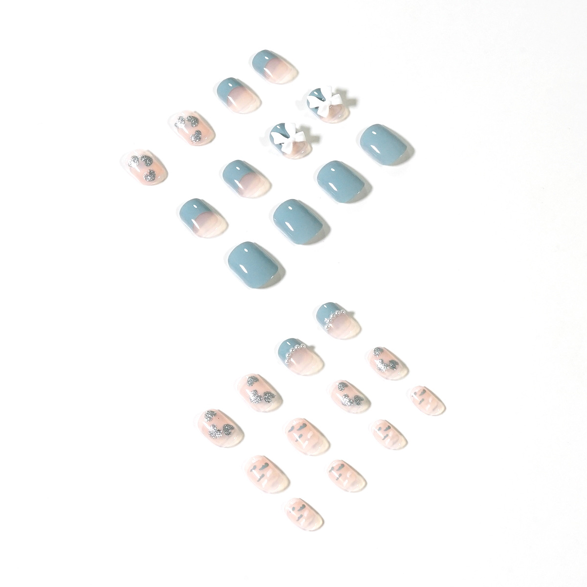 雾霾蓝小香风珍珠穿戴美甲成品假指甲美甲贴片指甲贴片可拆卸甲片 quantidade
