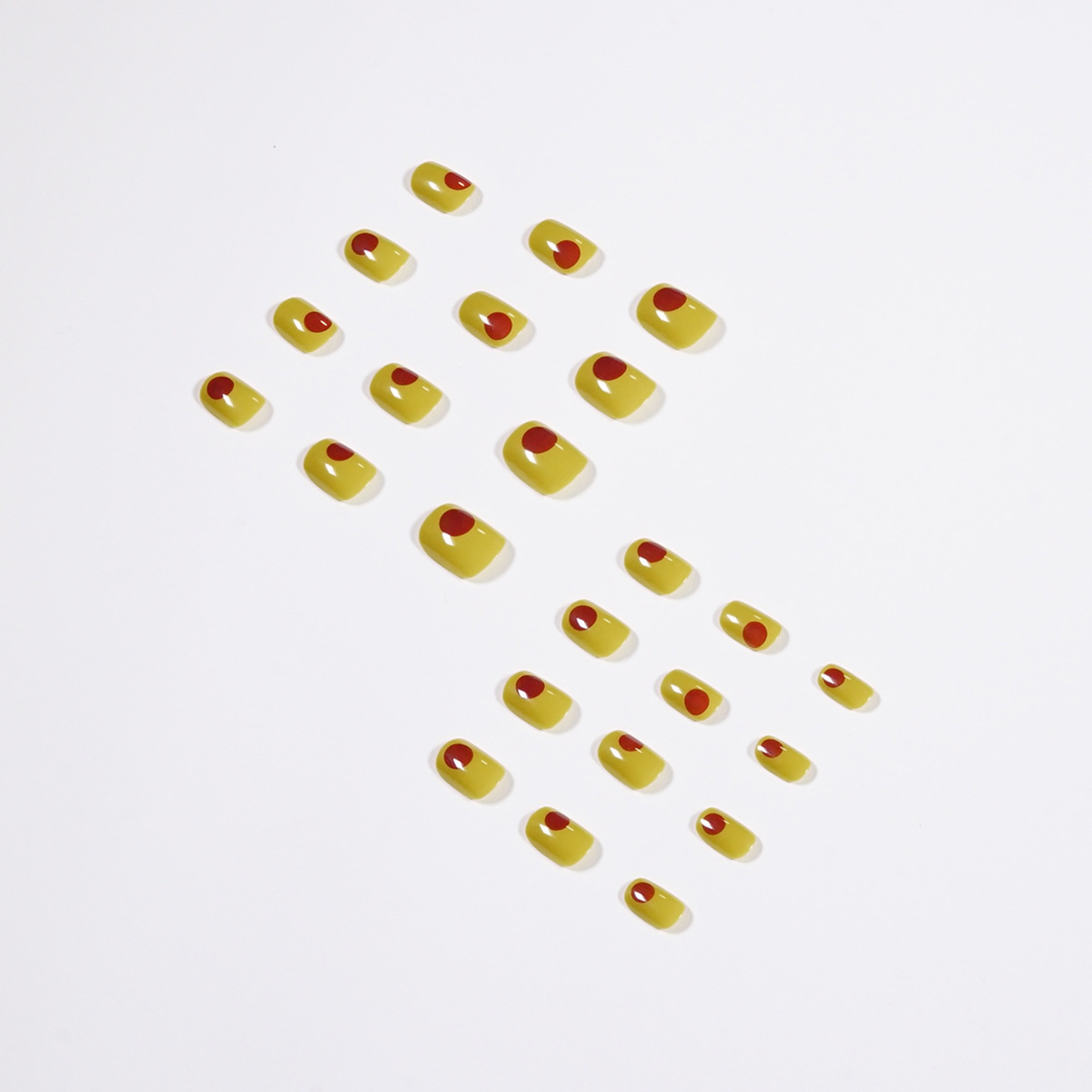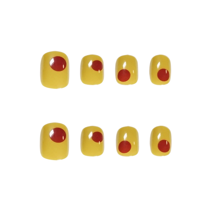 绿豆黄短款穿戴甲涂鸦美甲撞色甲片跨境穿戴美甲批发假指甲 nails