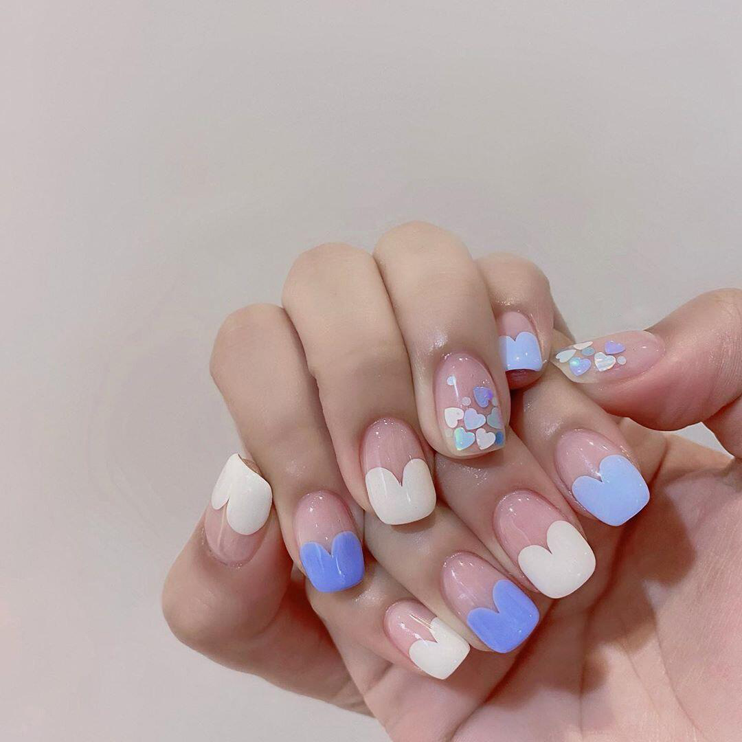 马蹄莲心心蓝色穿戴甲成品假指甲美甲贴纸指甲贴片防水地摊货源 quantidade