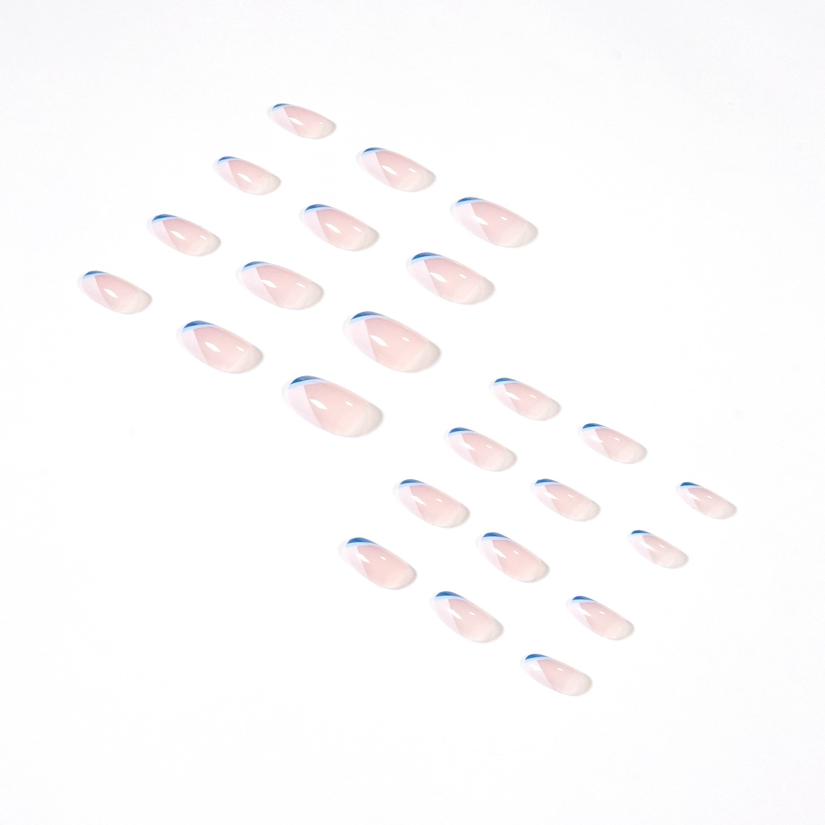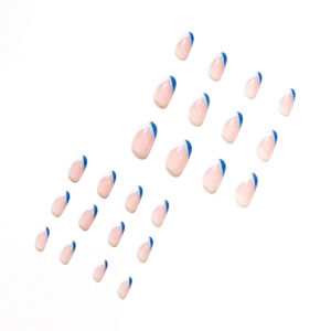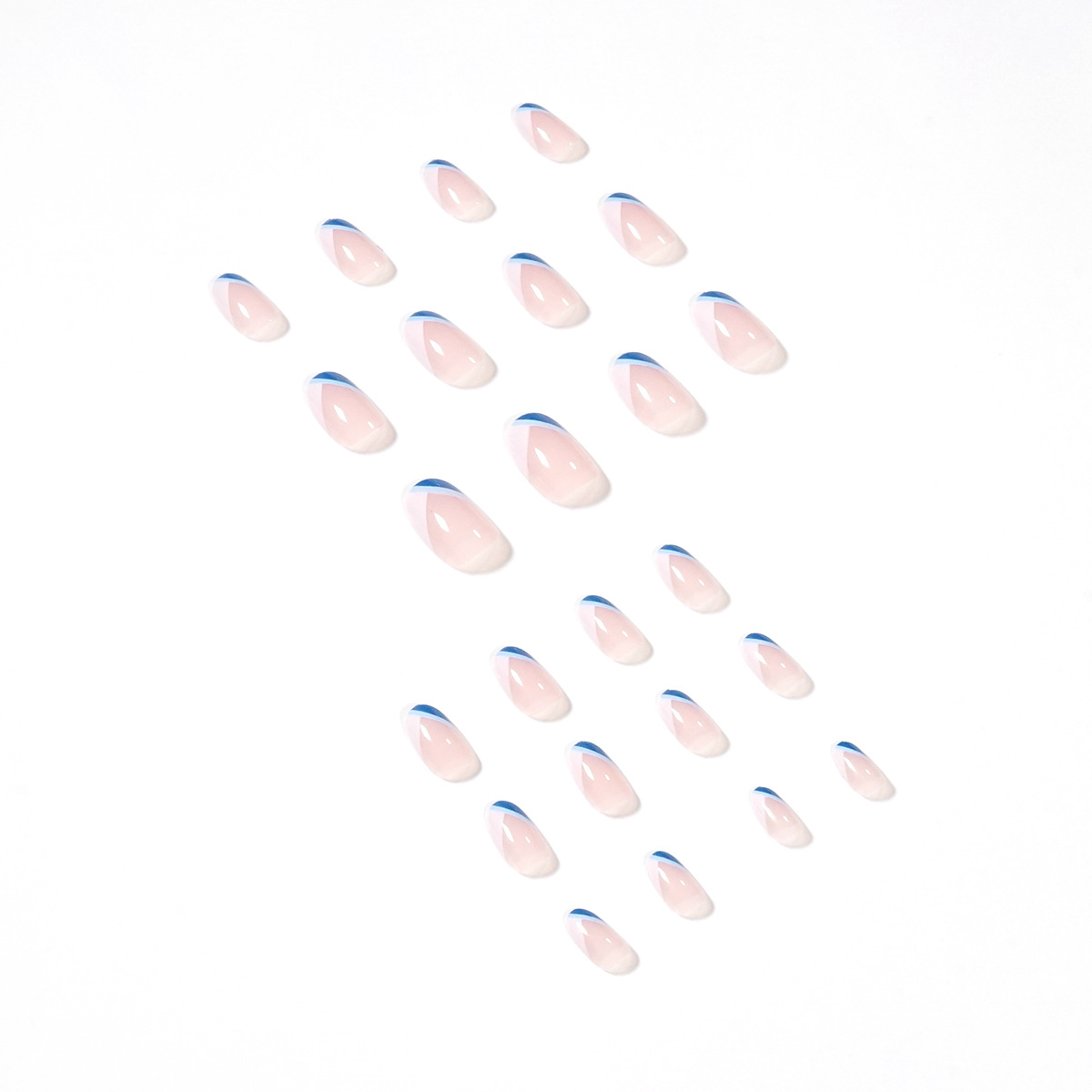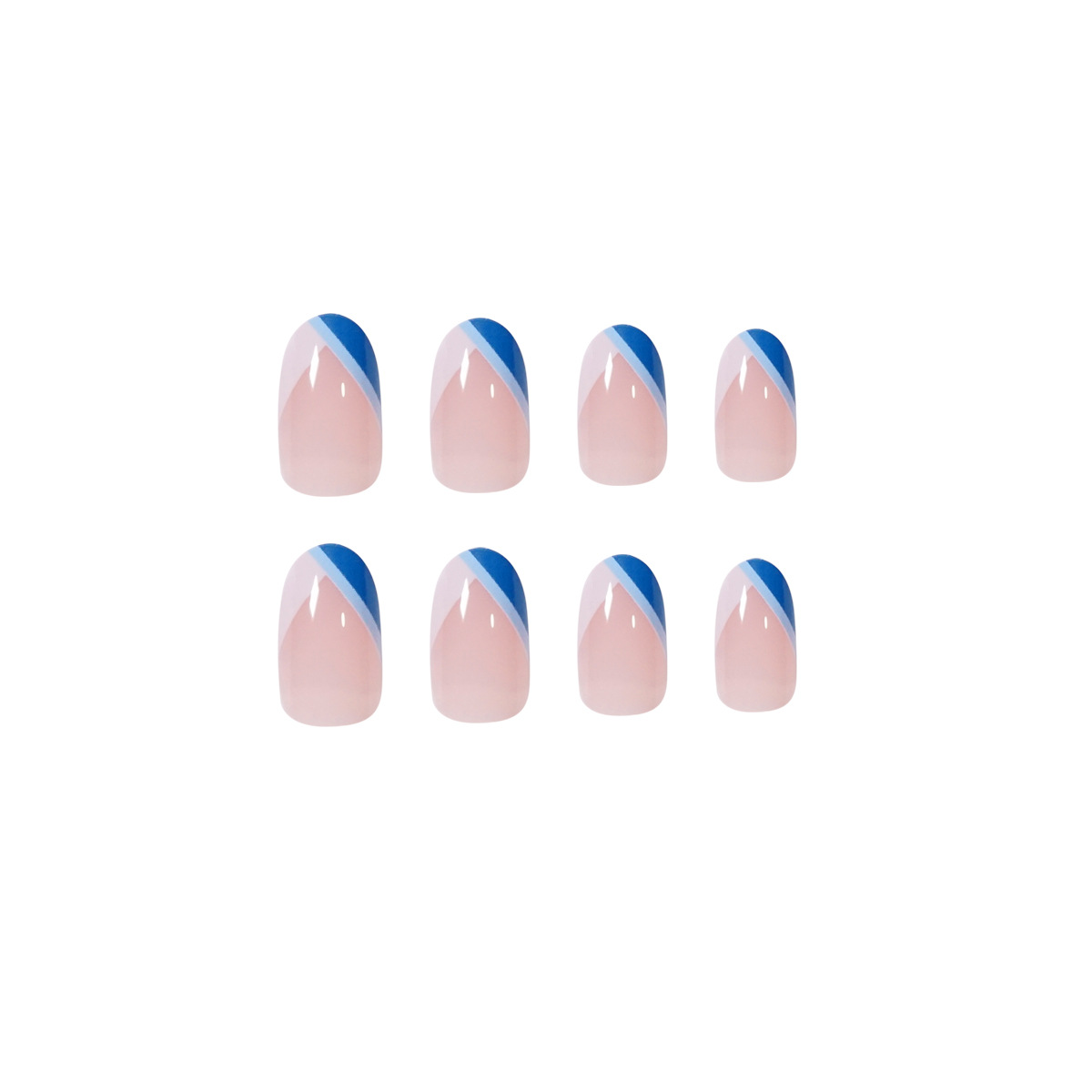 / 简约法式蓝白线条拼色假指甲美甲贴片指甲贴片False nail跨境直供