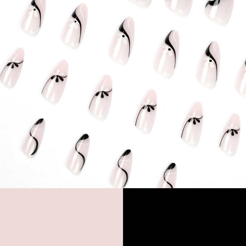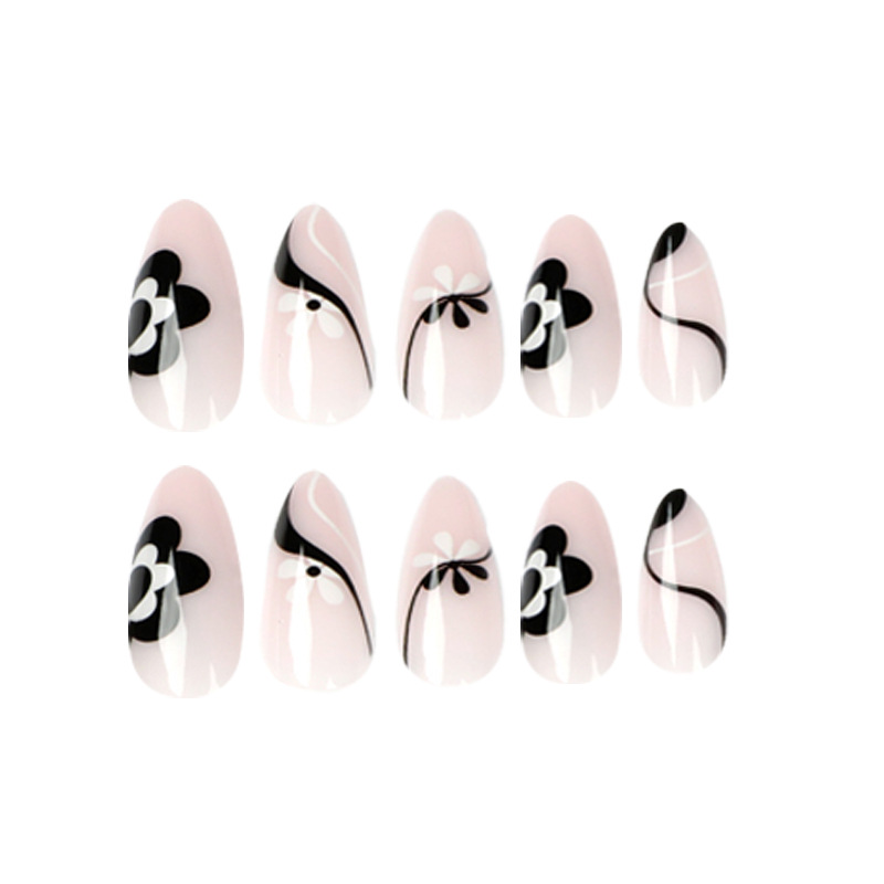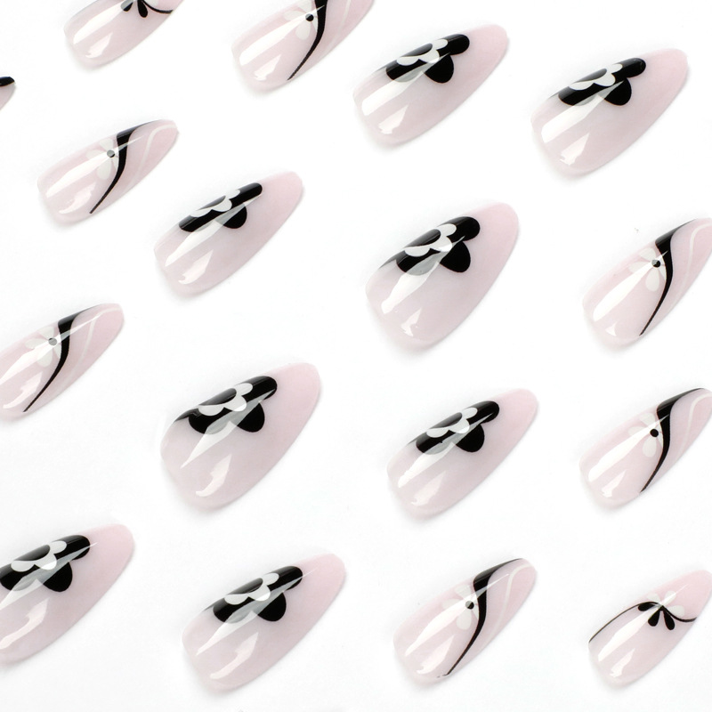 简约法式风黑白小花穿戴甲美甲甲片批发美甲片可拆卸美甲片美甲
