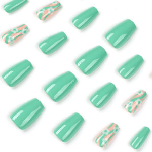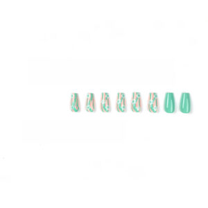 美甲穿戴甲批发短款绿色波浪白色小花穿戴式美甲nail甲片穿戴甲片 quantidade