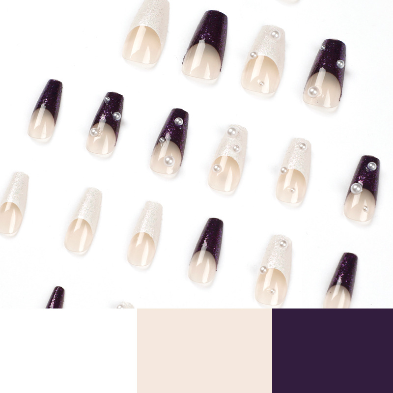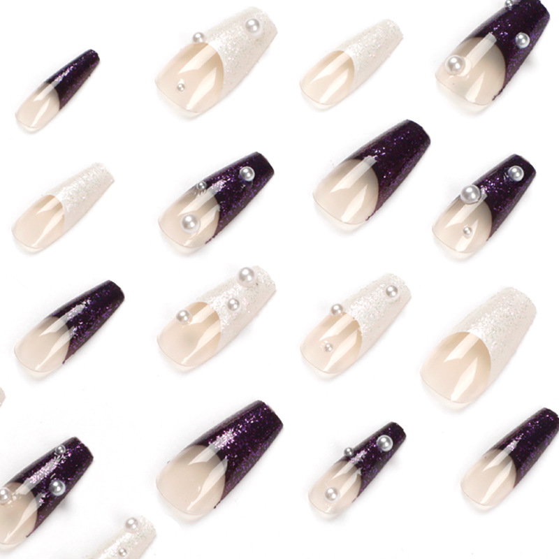 美甲穿戴甲批发穿戴甲 法式白紫双拼珍珠可拆卸美甲 nails的甲片 quantidade
