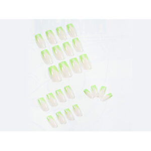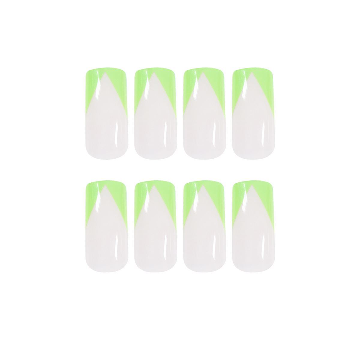/ 裸色斜边法式果绿穿戴美甲成品假指甲美甲贴片指甲贴片外贸货源