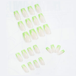 裸色斜边法式果绿穿戴美甲成品假指甲美甲贴片指甲贴片外贸货源 quantidade