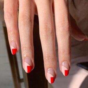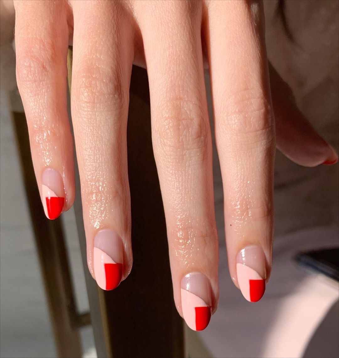 斜法式系列水红斜边外贸款穿戴甲成品美甲贴片指甲贴片假指甲甲片