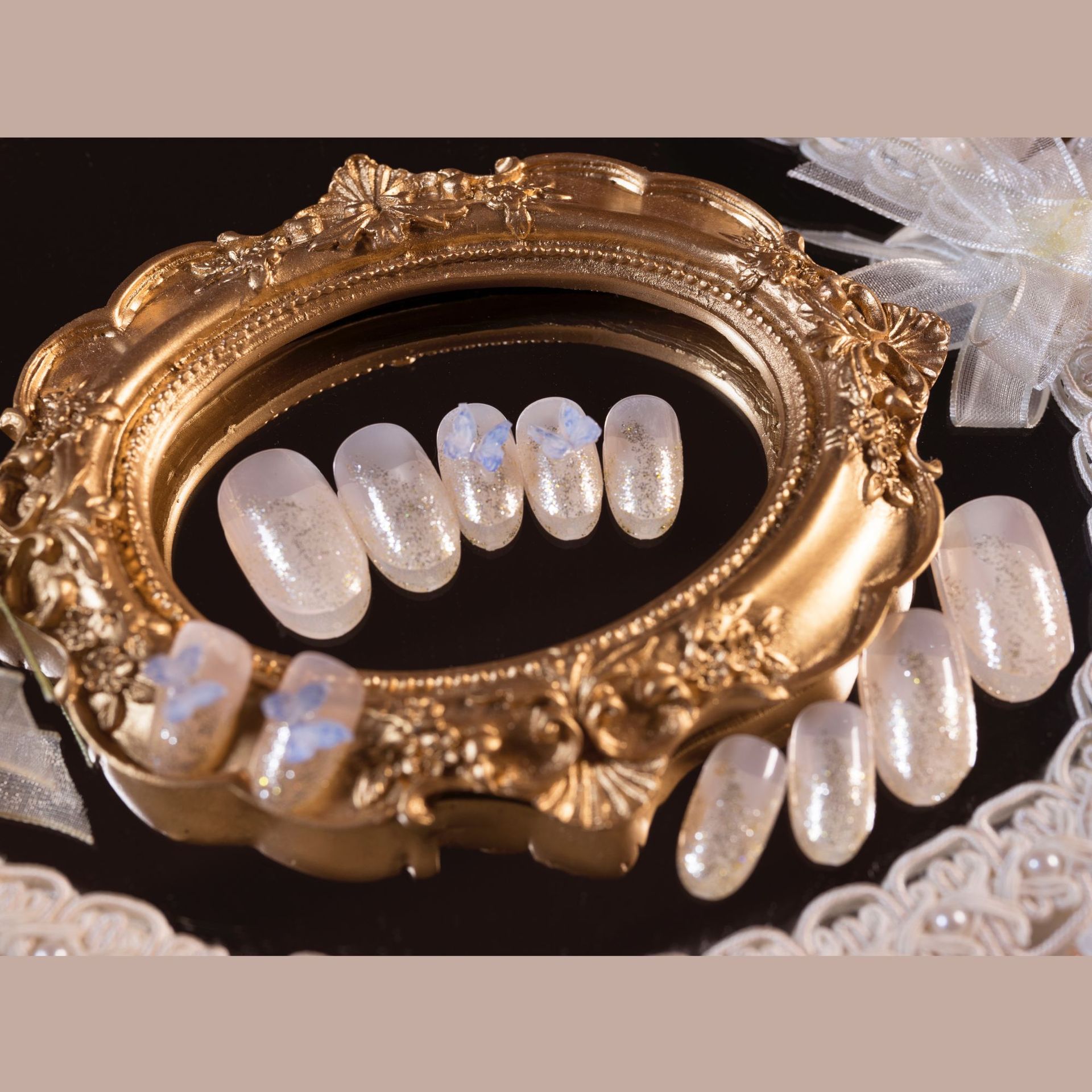 / 闪粉尖头蝴蝶穿戴甲成品美甲贴片假指甲网红蝴蝶防水指甲片可拆卸
