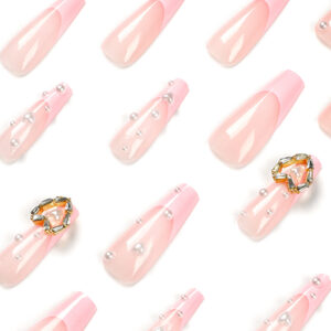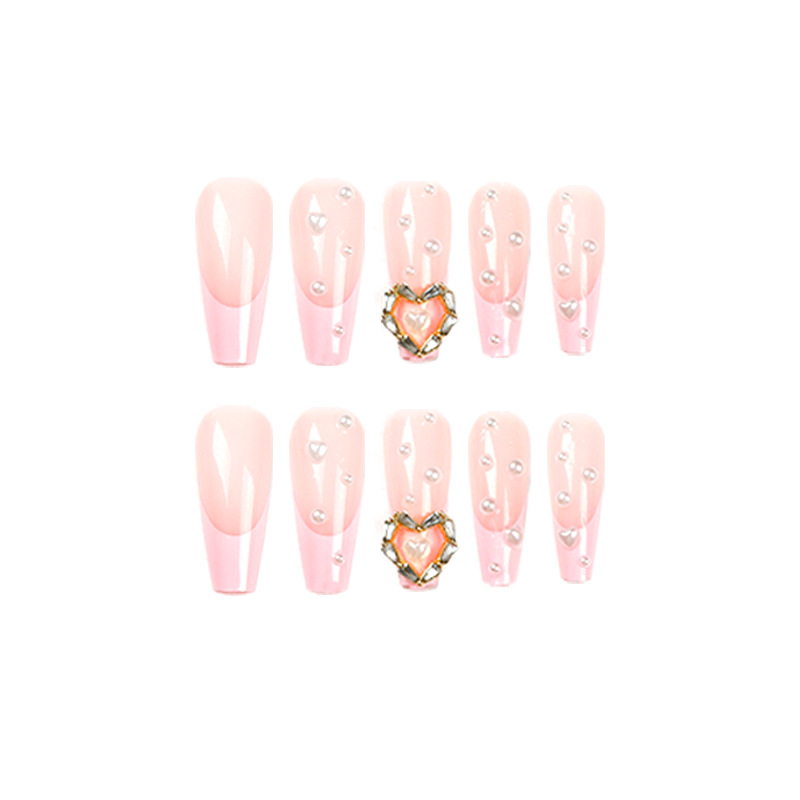 穿戴甲批发穿戴甲 法式粉边美甲甲片爱心珍珠美甲片可拆卸 nail穿戴甲批发穿戴甲 法式粉边美甲甲片爱心珍珠美甲片可拆卸 nail