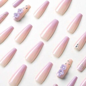穿戴美甲紫色渐变长芭蕾立体花朵水钻美甲贴片批发甲片指甲片批发 quantidade