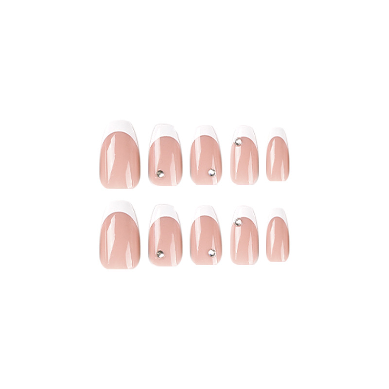 / 穿戴甲片白色法式短芭蕾水钻美甲穿戴甲甲片美甲片批发假指甲nail