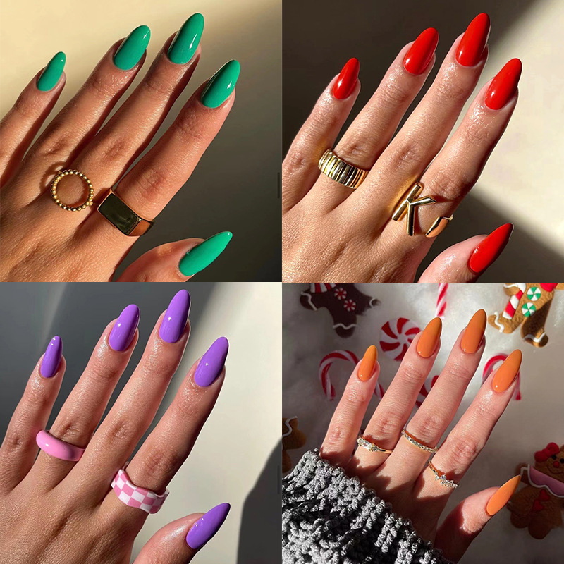 / 假指甲片批发纯色中长款尖甲合集美甲穿戴甲中长款press on nail