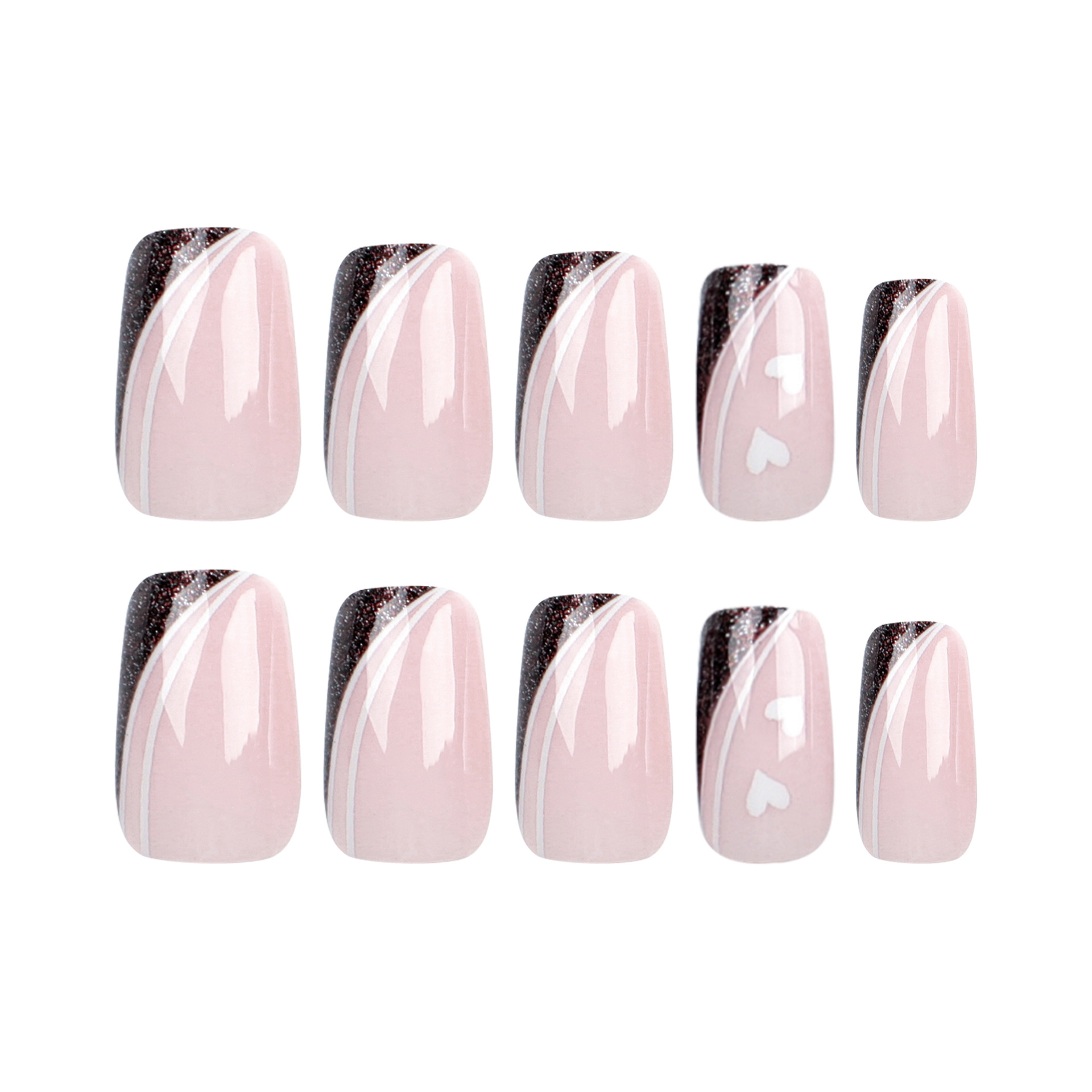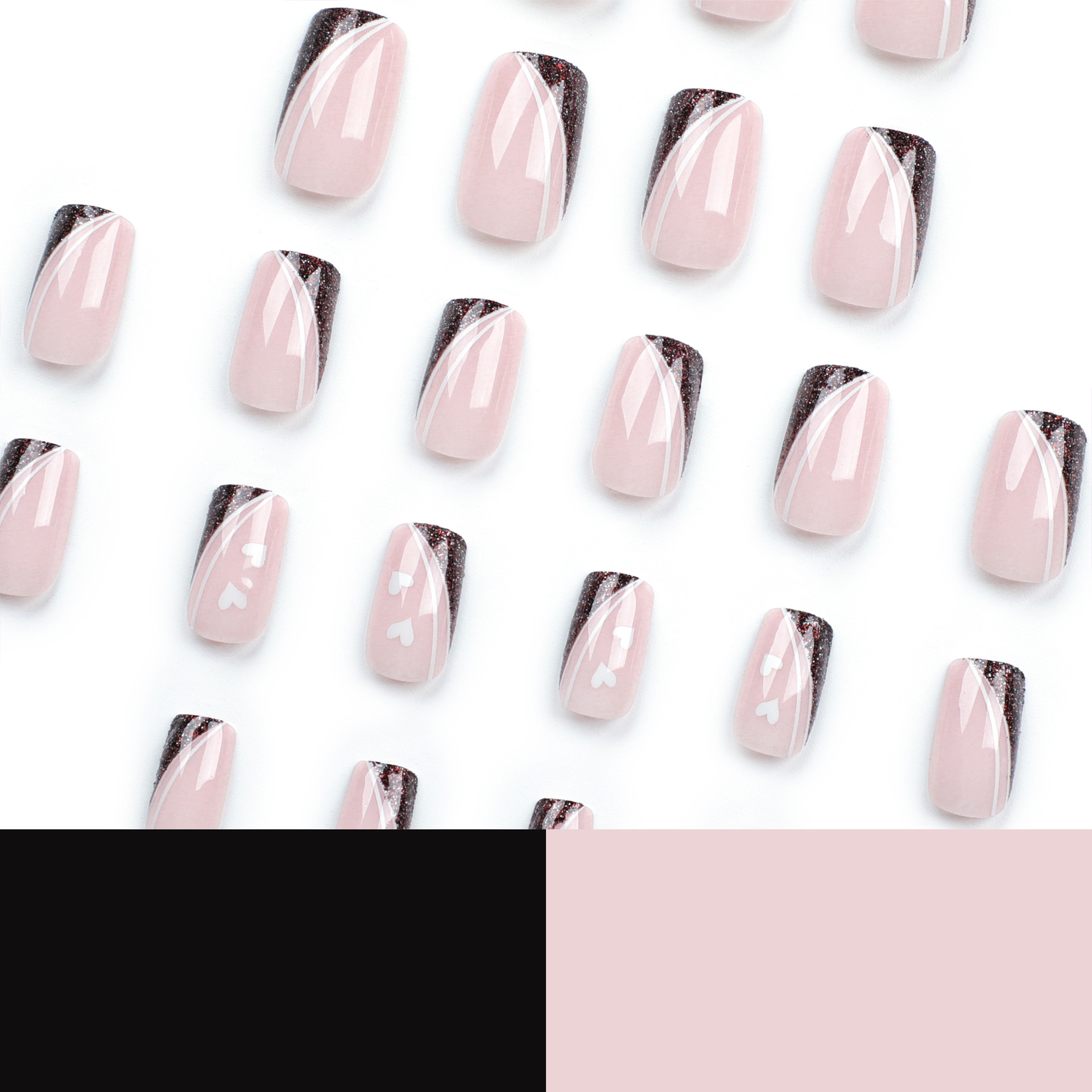 美甲甲片成品批发中短款方形简约爱心穿戴甲法式线条指甲片假指甲美甲甲片成品批发中短款方形简约爱心穿戴甲法式线条指甲片假指甲