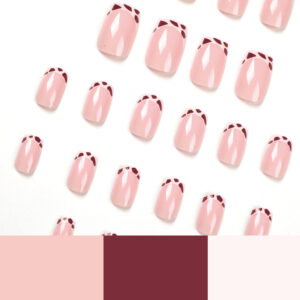 Borda branca de verão Francês vermelho e verde pequena flor desgaste unha unha unha unha unha removível unha arte placa de unha
